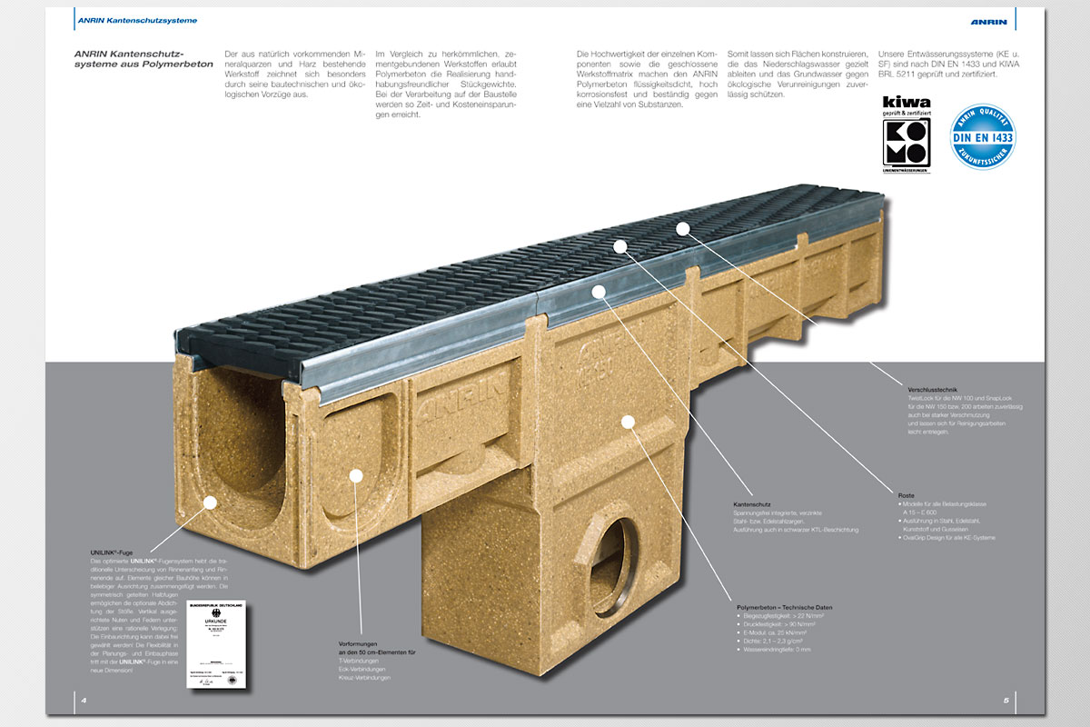 ANRIN entwickeln und produzieren wir seit 1972 wegweisende Entwässerungsrinnen aus Polymerbeton und Abdeckroste für alle physikalischen und gestalterischen Ansprüche.