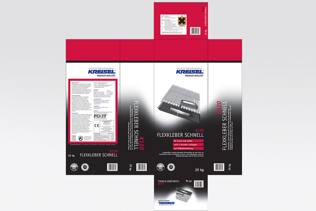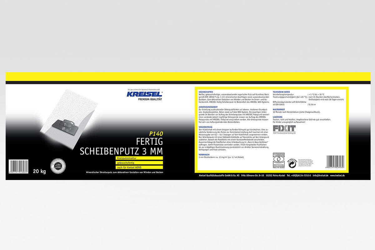 Gestaltung der gesamten Produktpalette in verschiedenen Gebinden und Gebindegrößen.