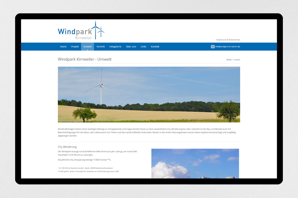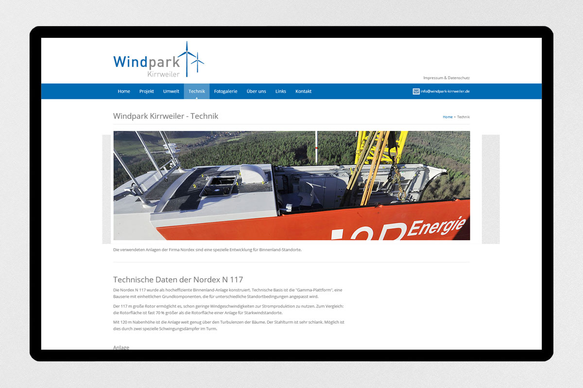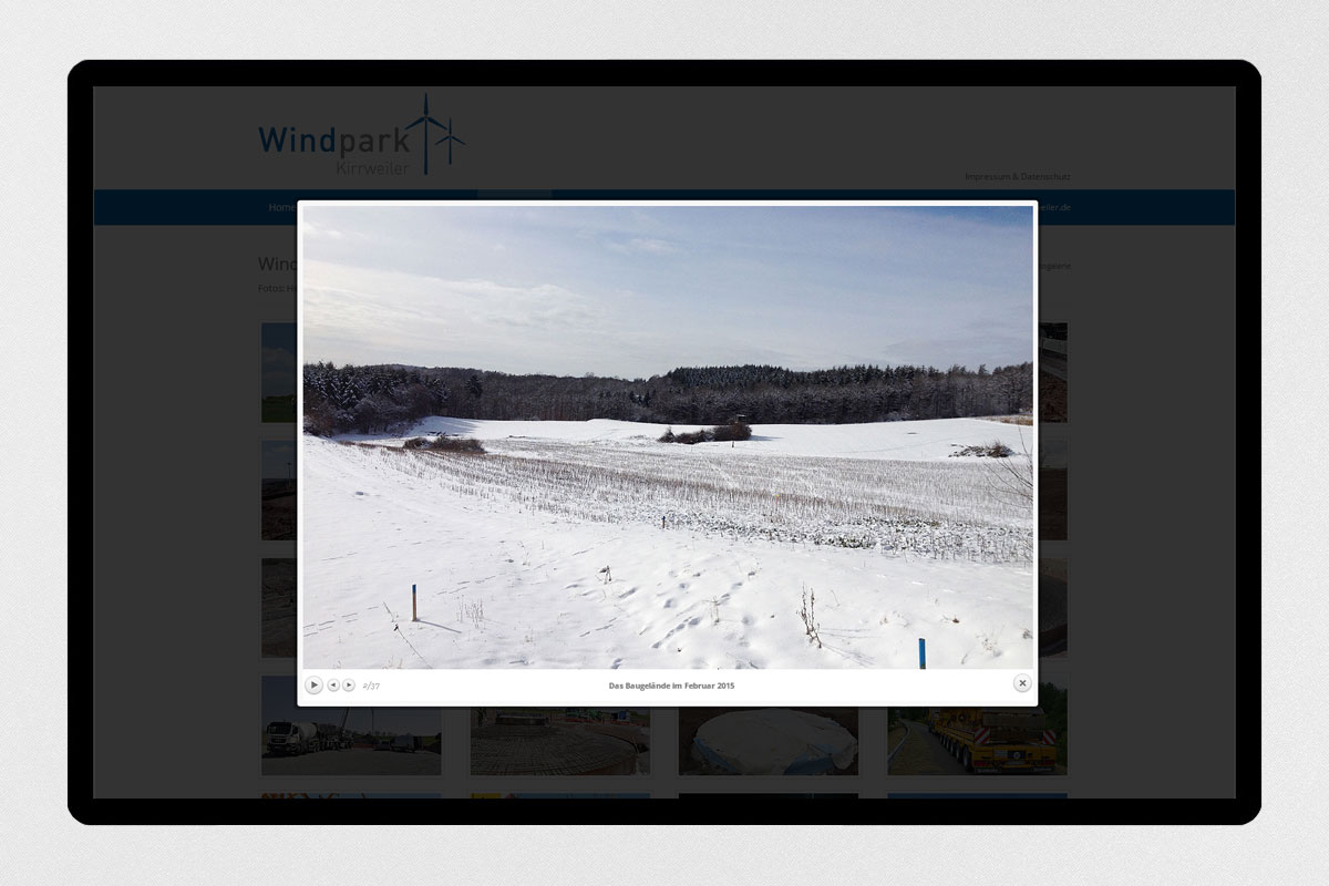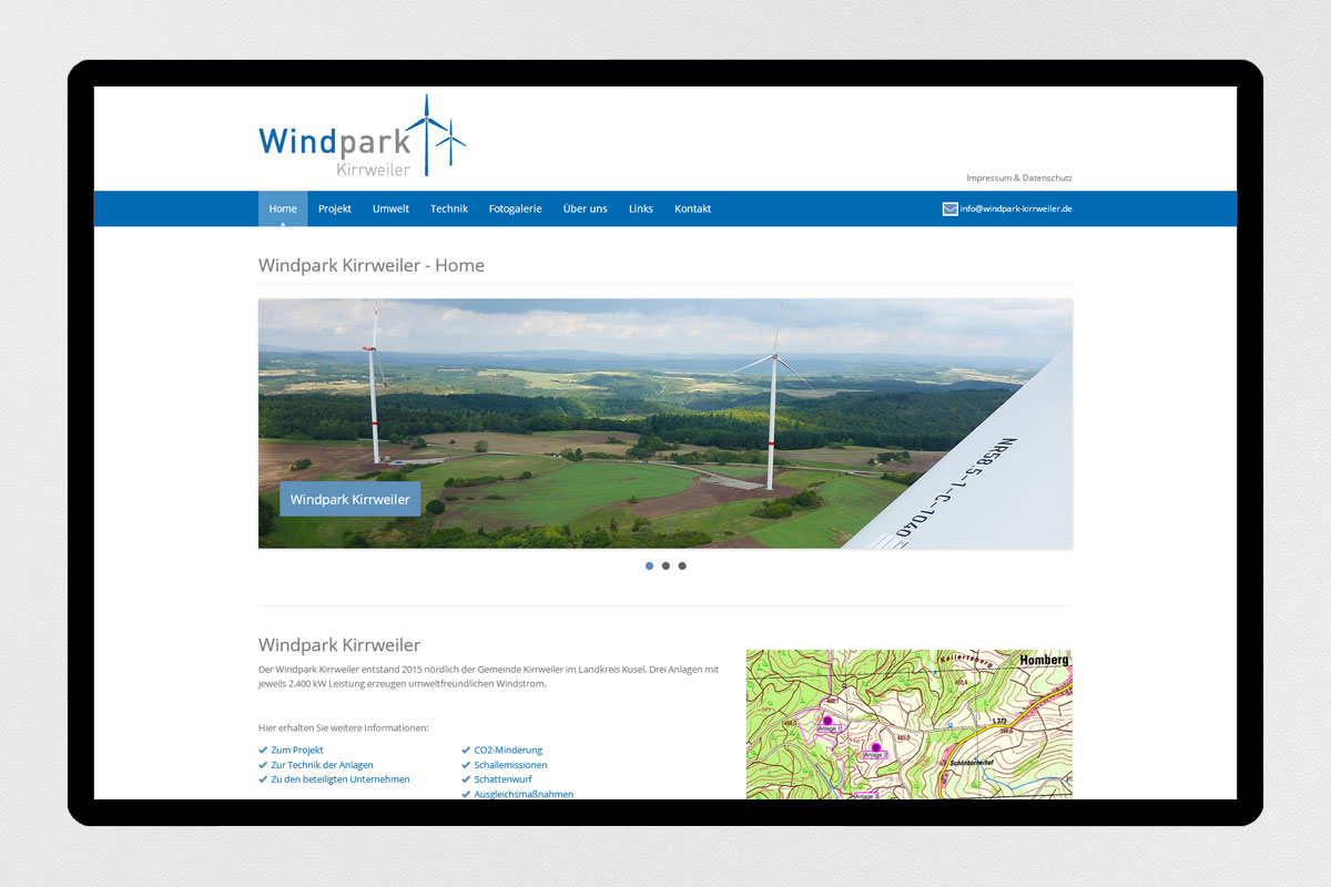 Der Windpark Kirrweiler entstand 2015 nördlich der Gemeinde Kirrweiler im Landkreis Kusel. Drei Anlagen mit jeweils 2.400 kW Leistung erzeugen umweltfreundlichen Windstrom.